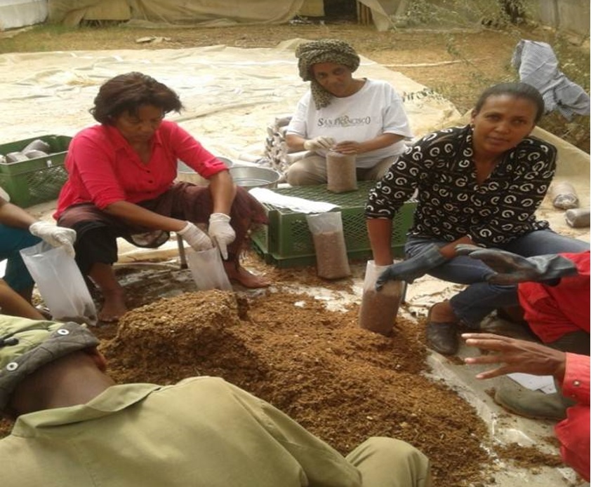 In 2013, the EWAA in collaboration with the Ministry of Agriculture launched a training program to introduce mushroom production in Eritrea. Out of all the participants’ seven women entrepreneurs volunteered to commit themselves to introduce this new agricultural product to the Eritrean market. Accordingly, they decided to deepen their knowledge through training. Under the supervision of a Chinese professor of mushroom production and mushroom expert from the Ministry of Agriculture, in two months' time, they came up with the first harvest.